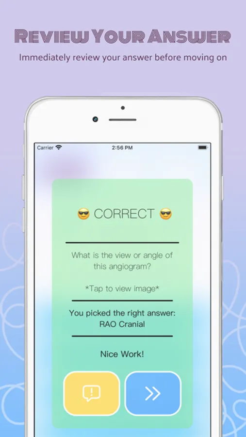 • Images: View angiograms and waveforms to answer certain questions and improve your image recognition skills!