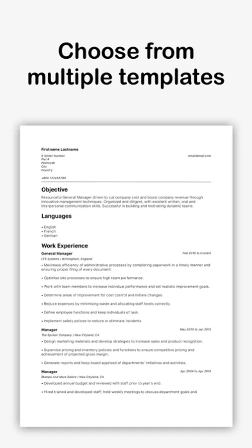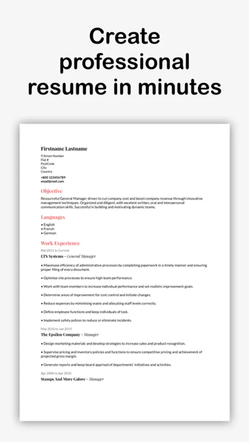 Create beautiful professional resume in minutes. Writing good resume is 80% of landing a job. It shouldn't be hard creating a resume. When you create a resume it contains an example so it's very easy to start and edit the template.
