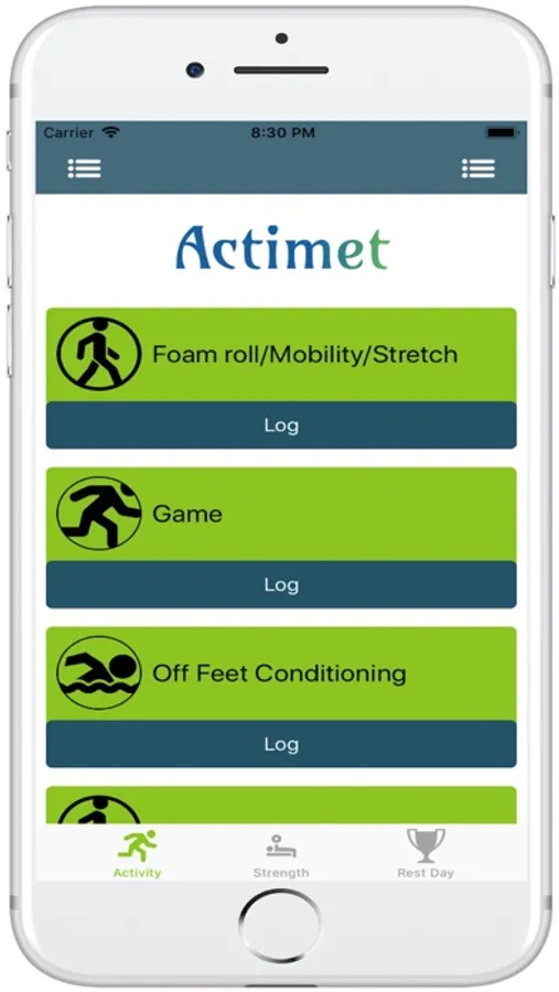 The Actimet mobile App allows the athlete to easily share and store data on training and rehab sessions, provide update on daily wellness and injury status, Review Sessions and future training schedules and easily provide feedback and rest day info to their coach.