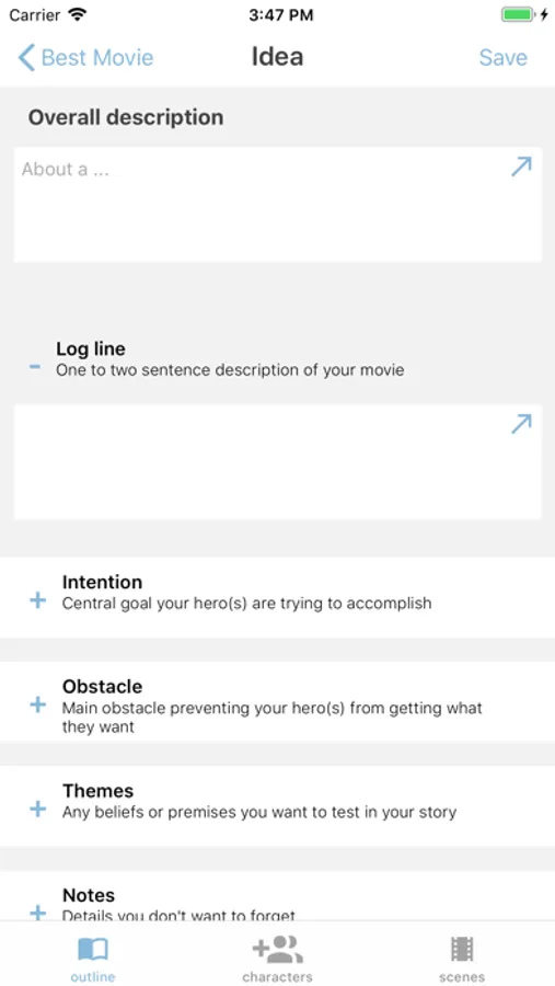 I originally built this app because I found myself coming up with ideas for screenplays but didn't have a dedicated place to capture them. I also wanted a tool that would help me flesh out the story, characters, and scenes before I sat down in front of my computer to write.
