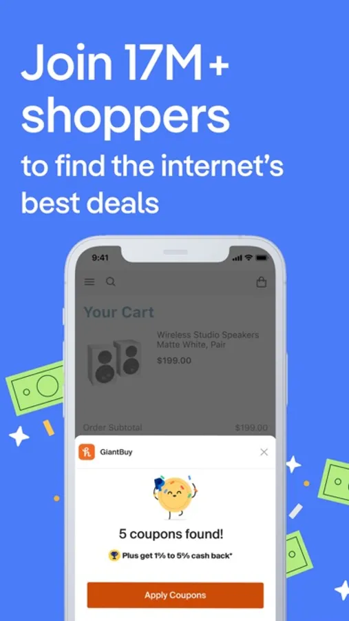 With our new embedded mobile browser extension, shop on store sites with Safari and we’ll automatically pop up if we find coupons!