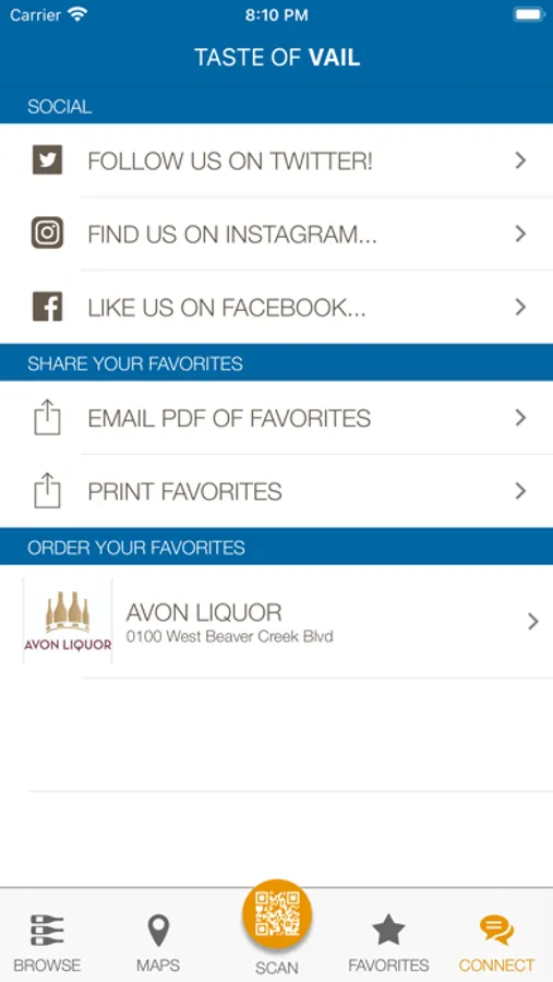 Scan your favorite wines at the TASTE OF VAIL with the companion app so you can order the from your local liquor Vail store!