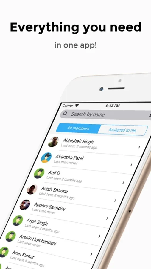 Have all your member and staff contact list at your fingertips so you can call, email or Whatsapp them anytime from the app.