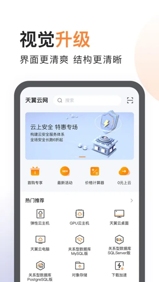 手机天翼云APP,天翼云官方出品,满足您随时随地触达天翼云的需求。您可以购买、管理云资源、查看云主机详情、工单管理、价格计算器、多产品视频展示、用户中心、与客服沟通等优质服务,助您快速部署上云!