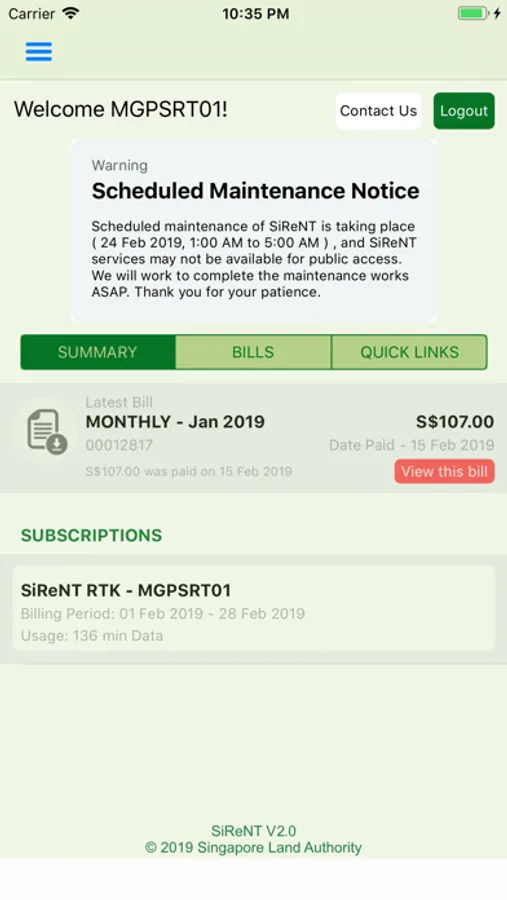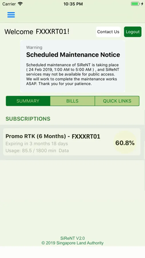 The SiReNT mobile app is a companion app for users of the Singapore Satellite Positioning Reference Network (SiReNT) services. SiReNT subscribers can view their subscription information, usage details, Reference Stations information and other useful information for mission planning. Non-subscribers are welcome to use the free information included in this app.