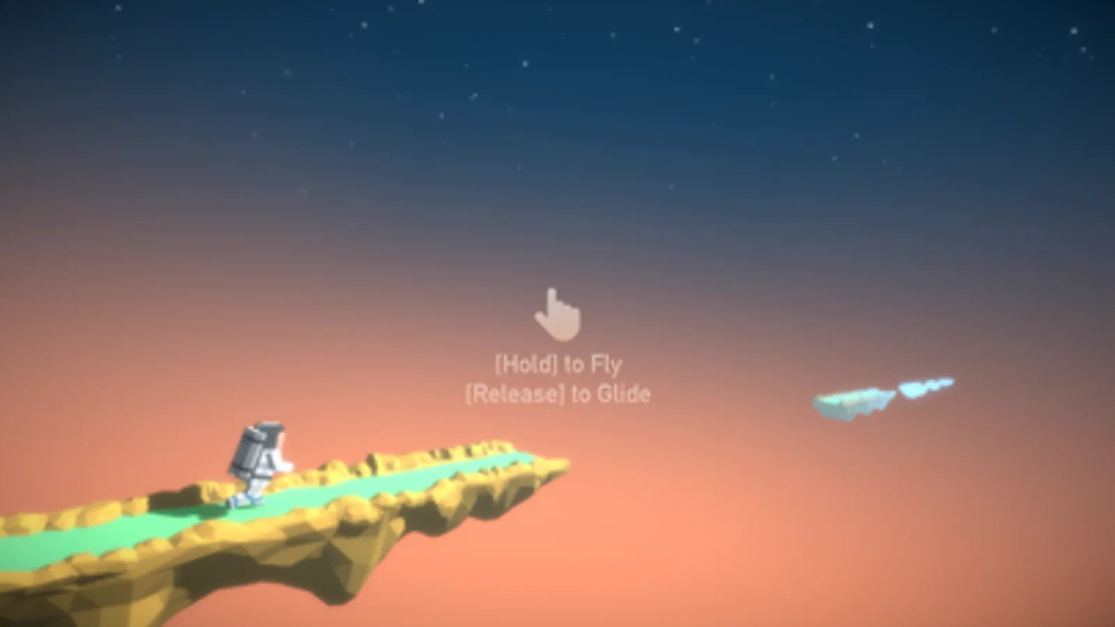 In Astral Glide, you play an astronaut and your mission is simple: to glide through Space. Hold your finger on the screen to fly and release your finger to glide. Each time you land safely on the ground you earn a point. You can only fire your thrusters when you are on land.