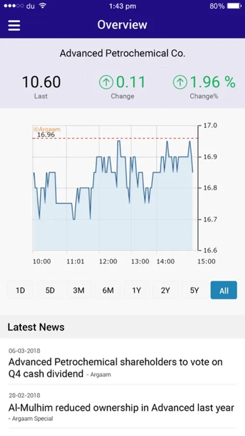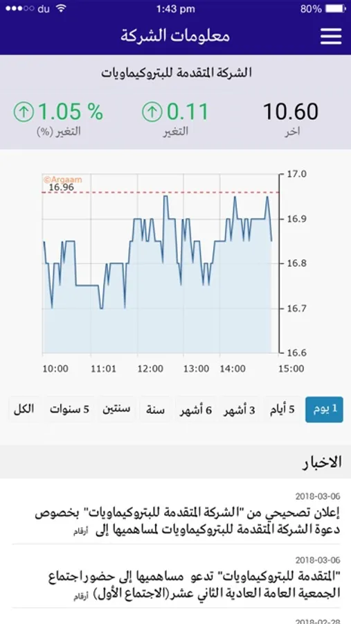 ستكون قادراً على متابعة البيانات الصحفية، المؤشرات المالية، تغيرات مجلس الإدارة وكبار الملاك، والكثير من افصاحات شركة المتقدمة للبتروكيماويات، وكما يتيح التطبيق مزامنة أهم أحداث المفكرة الاقتصادية مع مفكرة هاتفك مباشرة.