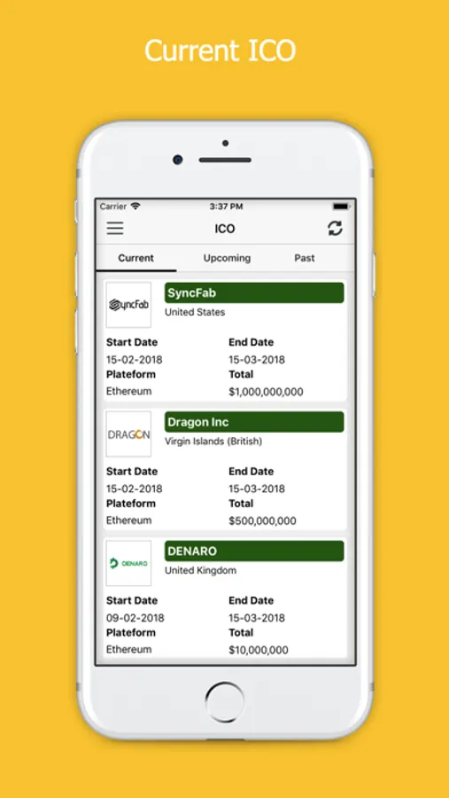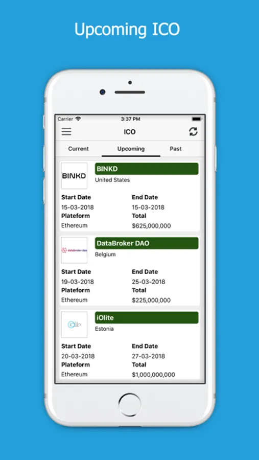In our app you can find information about such ICOs as Bank of Hash Power, Havven, FloraFIC, Serenity, FLOGmall, Etherty, Dogezer, Ethic Hub, Fox Trading, Safe Haven, MoxyOne, Cryptotask, Scrinium, Sp8de, LeadCoin, Cryptaur, Refereum, TravelChain Project, MyOddz.bet, Play2live, VISO, GIFcoin, Dragon Inc, SyncFab, DENARO, AIOM, EQUI, Otcrit, WorldWiFi, Capdax, VALID, Gizer, IAC AutoUnit, eGold, Hamster Marketplace, Deedcoin, R3SEC, Globitex, Giftcoin, Opporty, Kryll.io, AdHive, Robotina, Viewly, Cappasity, Origami Network, MobileBridge, CoinOil, Crypto N Kafe, Kora Network, FundFantasy, RealCasino, Vestopia, Exenium, SELFLLERY, Gilgamesh, Booleancoin, Rentything, Winco, Joy Token, Adblurb, ADAMANT Messenger, WAWLLET, Requitix, ENS.BID, Wikibits, Pitch, Thought, Crowdholding, BitRent, BeefCoin, Provoco, Forty Seven Bank, Handelion, Tutellus, Corl, AB-CHAIN, Galaxy eSolutions, Skychain, Crowd Machine, Clearcoin, Eroiy, Fabric Token, The Coffee Token, True Reply, PAYSURA, Nkor, BITTO Exchange, Ether Legends (ELET), Amon, Vestarin, Thrive, Decentralized News Network, PokerSports, VLB, MoneyToken, Mosaic, RentAway, GraphGrail AI, Native Video Box, Jointedu, Midex, DapCash, AstorGame, Connectjob, Galaxis, Etheera, FIC Network, BEAT, SMARTRealty, Virtonomics, Transcodium, Gamblica, EOS, Valorem Foundation, Darico, RepuX, DIW Token, Bills, Lendingblock, On.Live, Streamity, RxEAL, Signals Network, Viola.AI, BINKD, CDG, Cryptelo, NeuroChain, DataBroker DAO, Rexpax, FCFL, Sandblock, Bitnation, Gluon, Iryo, IPStock, Paygine, Kerberos Coin, TopiaCoin, Unibright, BitGuild, CRYPTOFLIX, BIORITMAI, WELL, FriendUP, ALAX, Mira, SMOKE, COTI, Safinus, Coins4Favors, ImmVRse, Giza Device, Augur, Lisk, Digix DAO, NEO, Stratis, Tao Network, Incent, BlockPay, FirstBlood, Iconomi, Lykke, Synereo, SingularDTV, Beyond The Void, Decent, Golem, Ark, vDice.io, Komodo, Golos, CreativeCoin, Wings, Tokes, ChronoBank, Qtum, Edgeless, iEx.ec, EncryptoTel, Gnosis, MobileGo, Humaniq, Lunyr, TaaS, BlockPool, TokenCard, EcoBit, BOScoin, Blockchain Capital, ZrCoin, Aeternity and much more!