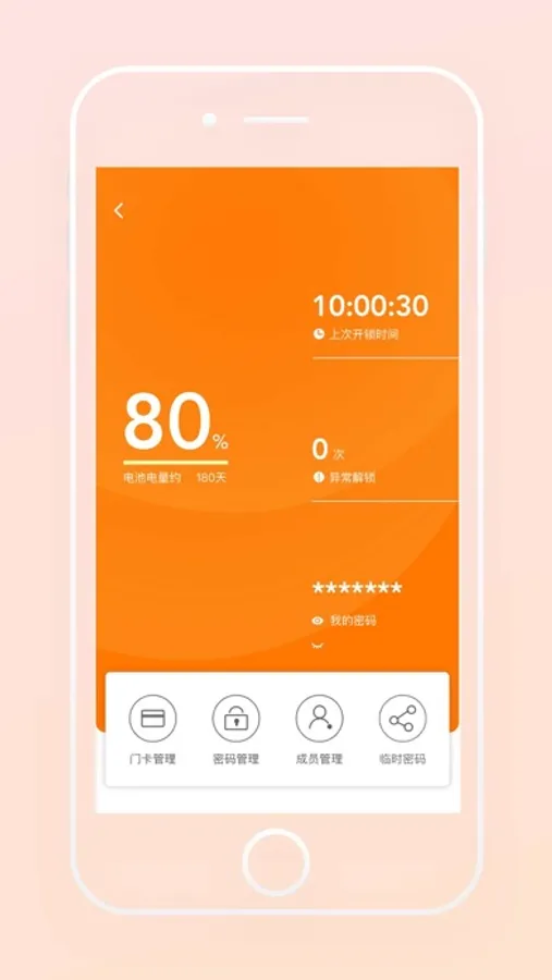 【智能设备管理】租客可通过手机远程管理智能门锁、智能空调、智能热水器等智能化电器,包括密码开门、临时密码开门、电器预约开关、电器安全查询等功能。