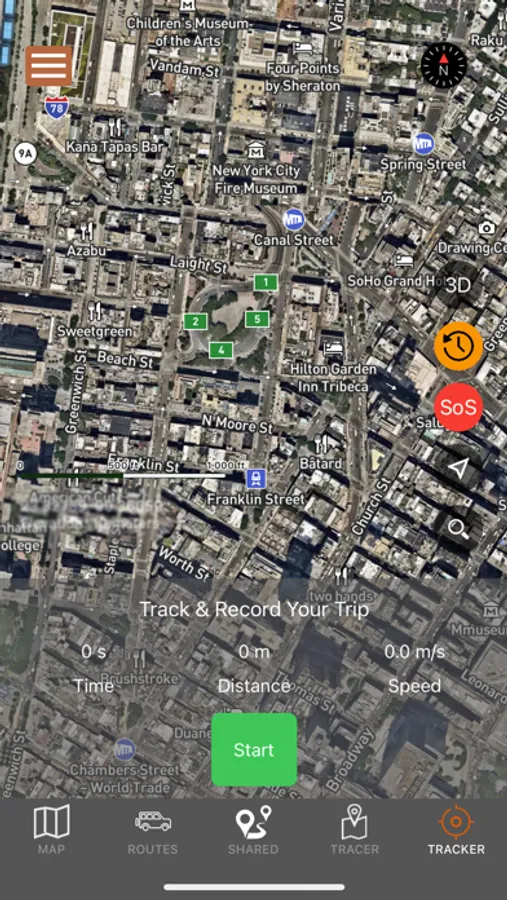 • Utilize the Tracker feature to measure and record time, distance, speed of a route