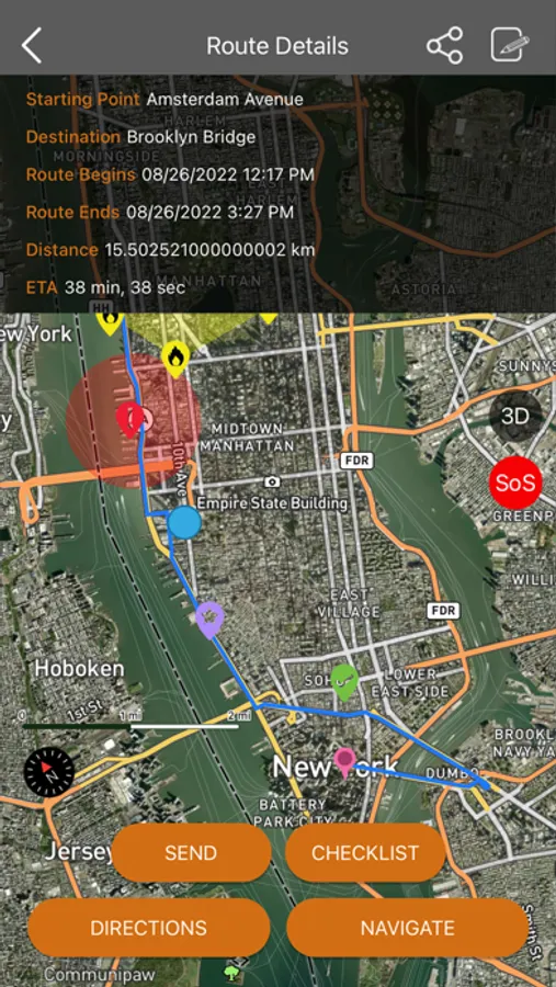 • Plan your route, dropping pins marking danger zones, hazards, landmarks, and safe havens – Upload additional data along with photos