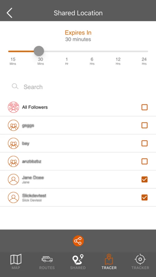 • Use the Tracer feature to share your location with others until you arrive safely at your destination