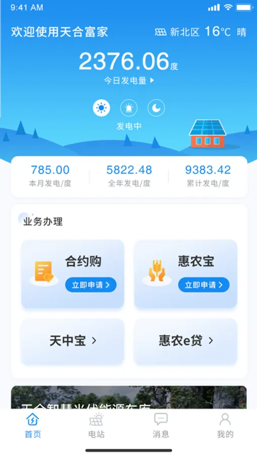 天合富家云平台监控系统,随时随地为天合富家用户展示全方位的电站运行情况、数据,提供即时的运维服务。支持所有天合富家销售安装的电站。