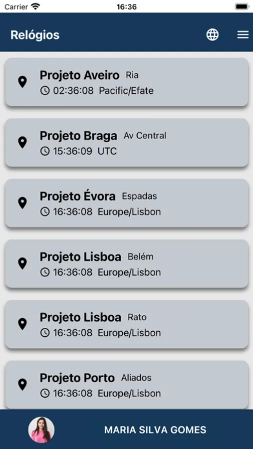 Permite fazer marcações em relógios virtuais e perante os quais realizar marcações registradas num servidor. Na aplicação de gestão de relógios permite a configuração de validações: localização geográfica e/ou fotografia.
