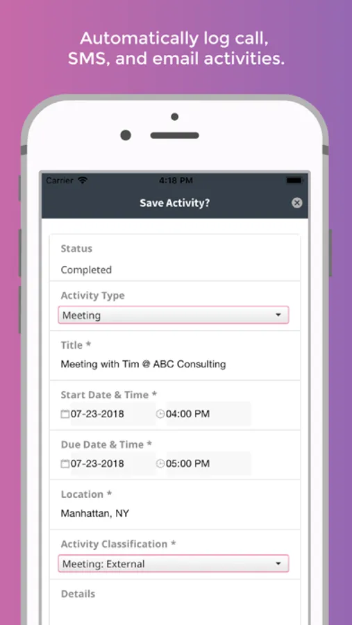1. It saves time and improves account logging accuracy by automatically logging all calls, emails and SMS communication activities