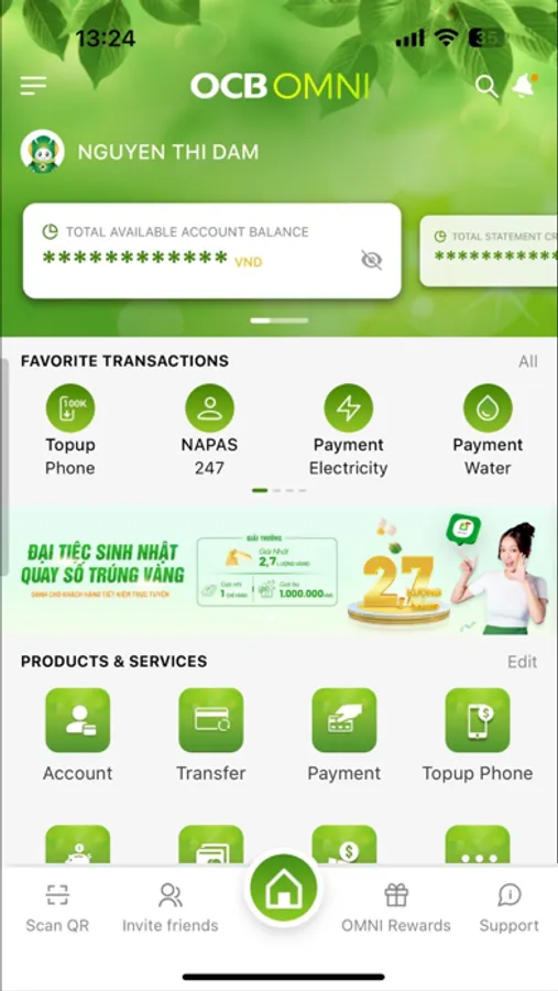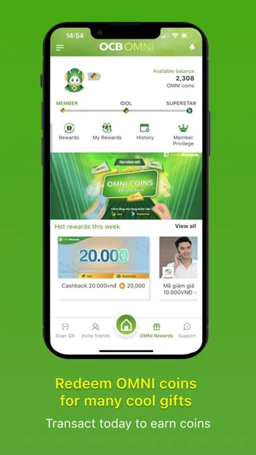 OCB OMNI application is researched and developed by Orient Commercial Joint Stock Bank (OCB), based on the world's most modern channel banking platform, supporting users to manage online financial transactions at anytime, anywhere with diverse utilities such as money transfer, bill payment, mobile online Top-up, tuition fee, QR Pay... and hundreds of other services.