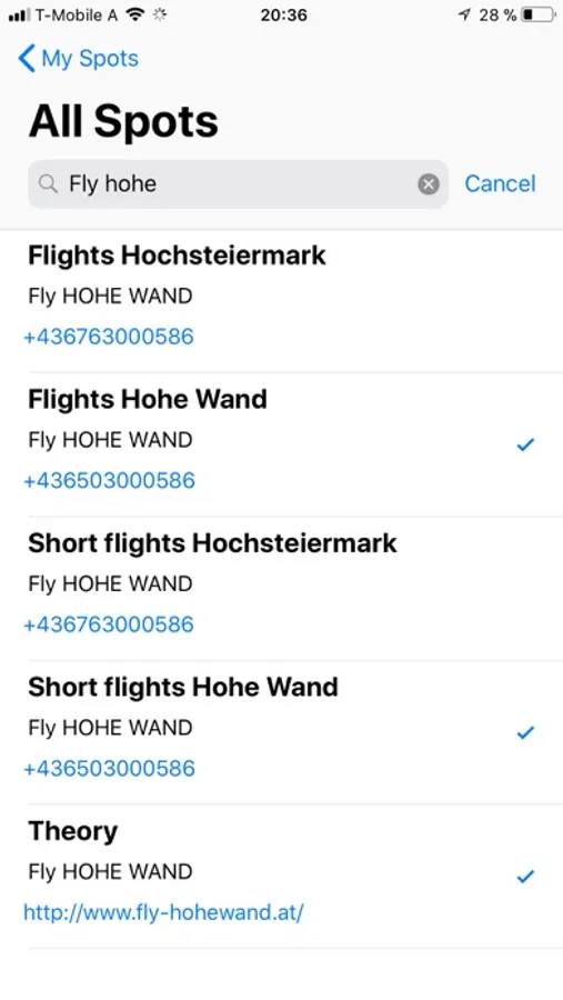 Want2Fly allows you to add your preferred paragliding training spots to My Spots.