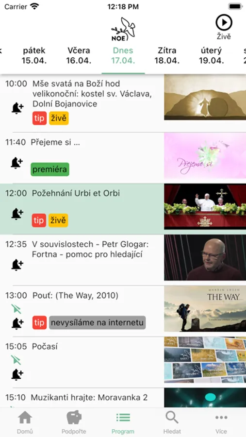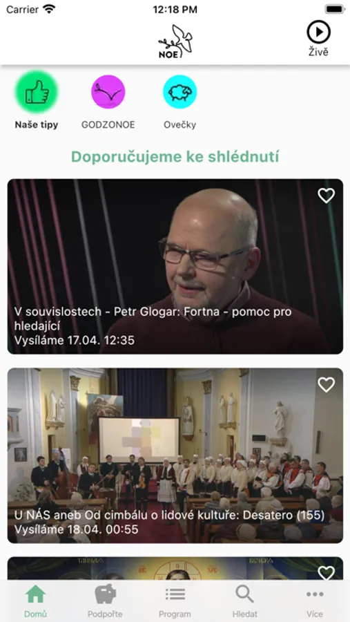 Aplikace TV NOE umožňuje rychlý přístup k programu, živému vysílání a archivu.