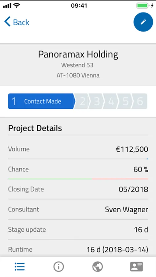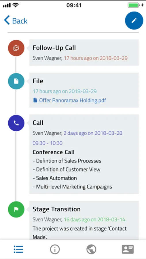 • All customer and project information including activities, documents and contacts directly on your iPhone