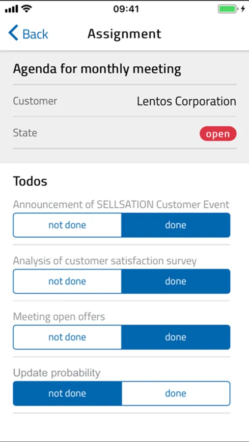 • With SELLSATION you can ensure that your accounts are perfectly managed through the continual feedback from your customers. Customer satisfaction can be automatically measured and surveys triggered within the SELLSATION-App.