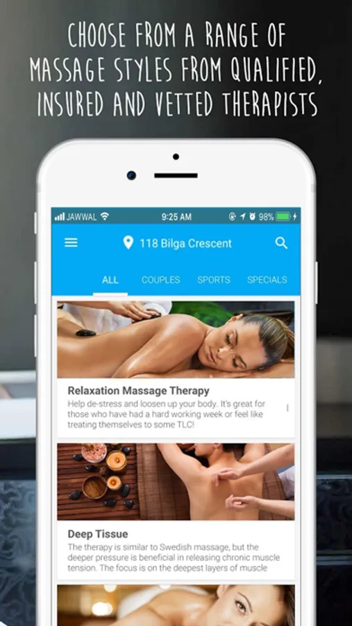 - Couples Massage: Enjoy a relaxing moment of any of our massage services - together. You can either book two massage therapists or one for back-to-back massage.