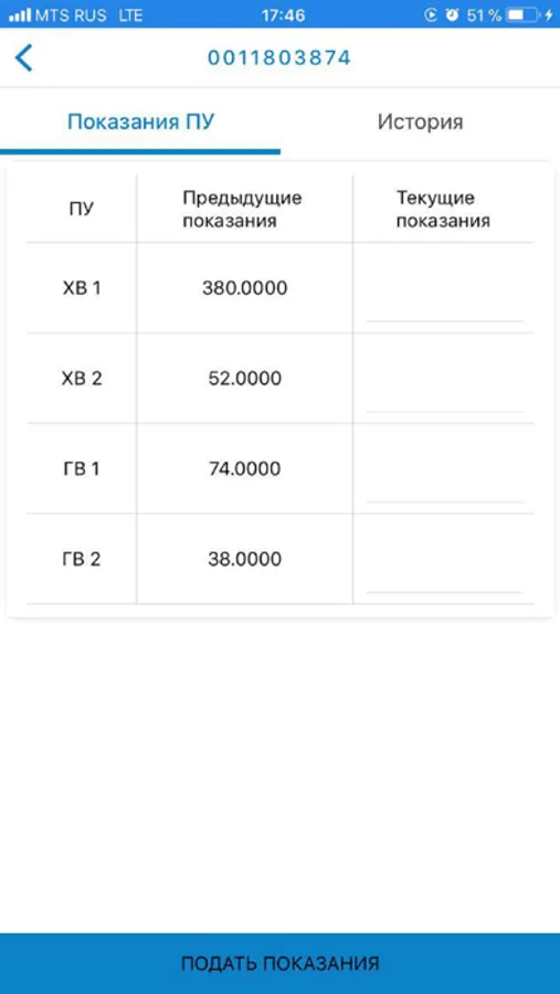 Приложение позволяет передавать показания индивидуальных приборов учета жителям,