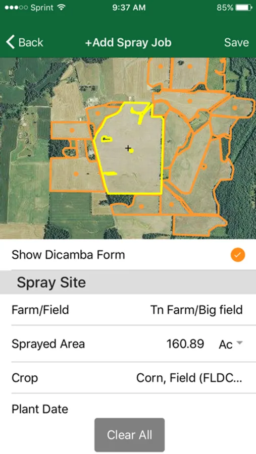 Use Farm Spray Pro to record spray applications and be in compliance with pesticide label requirements including the latest dicamba products. Draw, GPS, or import field boundaries with Farm Spray Pro in the field. Select a field and review field information before applying a spray record. Add spray records and view spray history or navigate to the field with turn-by-turn directions.