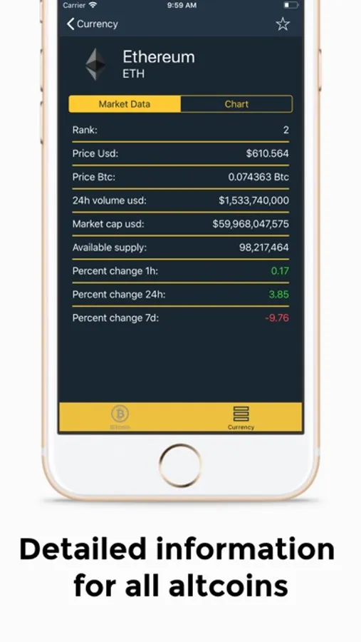 - Detailed statistics for each coin