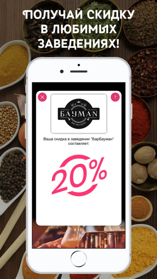 В наше приложение включены скидки в рестораны, бары и кафе. Вы можете получить скидки в заведения одним нажатием. Так же легко Вы можете найти этот ресторан на карте, которая уже интегрирована в наше приложение.