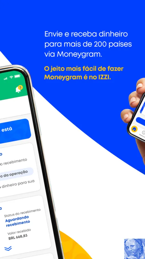 Além disso, no app, você tem a opção de fazer sua remessa pela MoneyGram, que disponibiliza o valor transferido para o exterior em até 10 minutos.