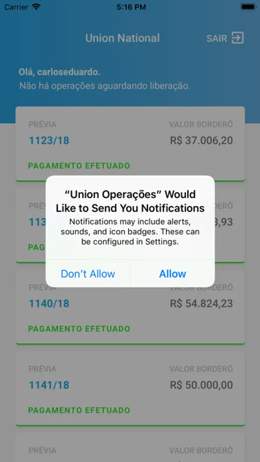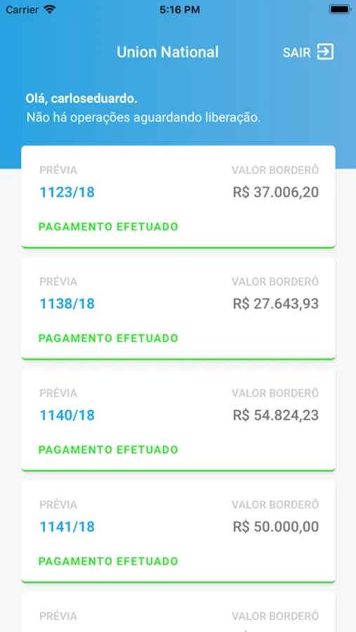 Com o aplicativo “Operações Union”, você poderá acessar seus valores liberados, referentes a operações de crédito enviadas diariamente.