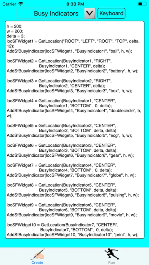 You can create any CSCS scripting code in one tab, "Create", and then see the results in another tab, "Run".
