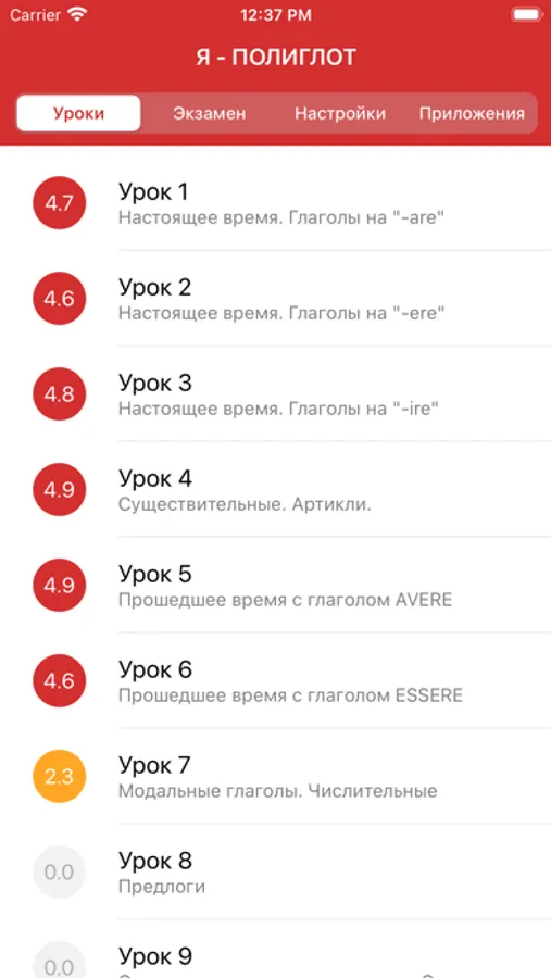 Полиглот. Итальянский язык - тренажер для обучения итальянскому языку.