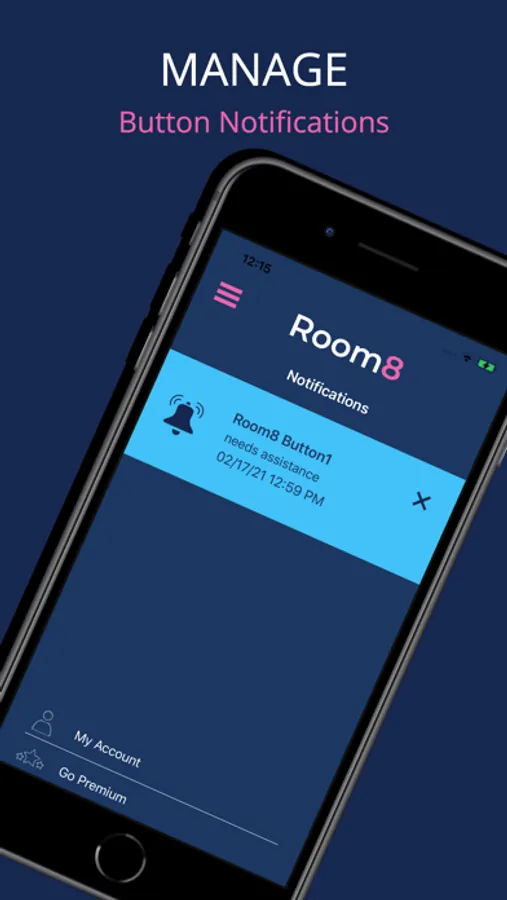 With this Room8 app, you can configure, customize and use the Room8 button(s) to send alerts to caregivers wherever they may be.