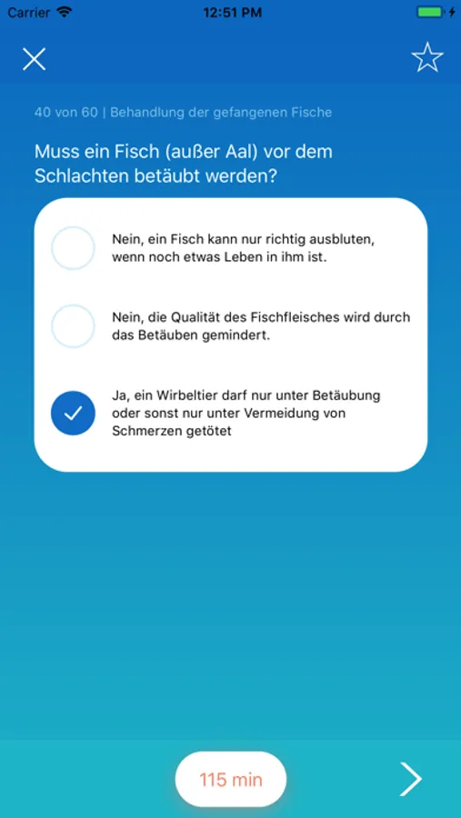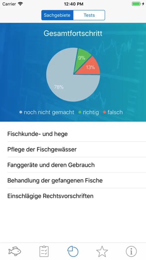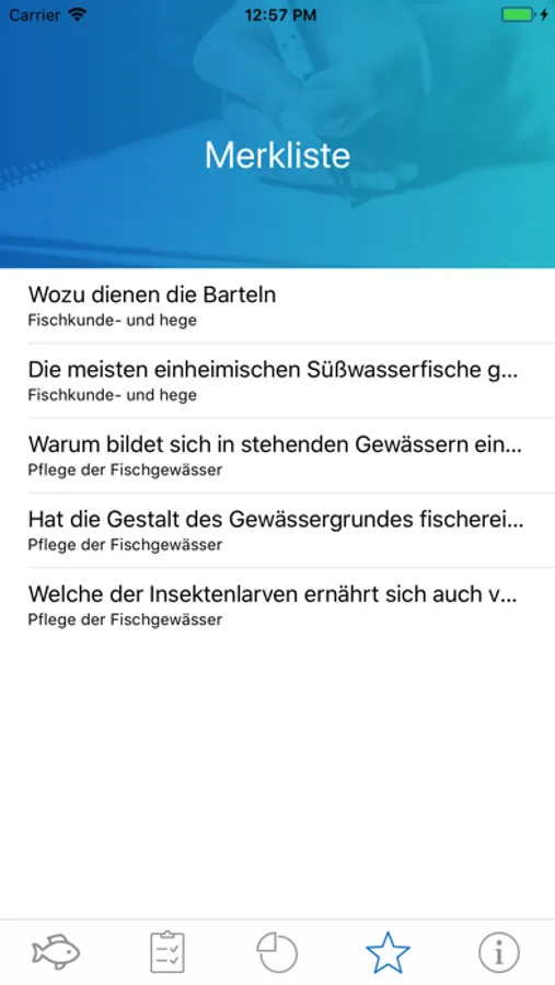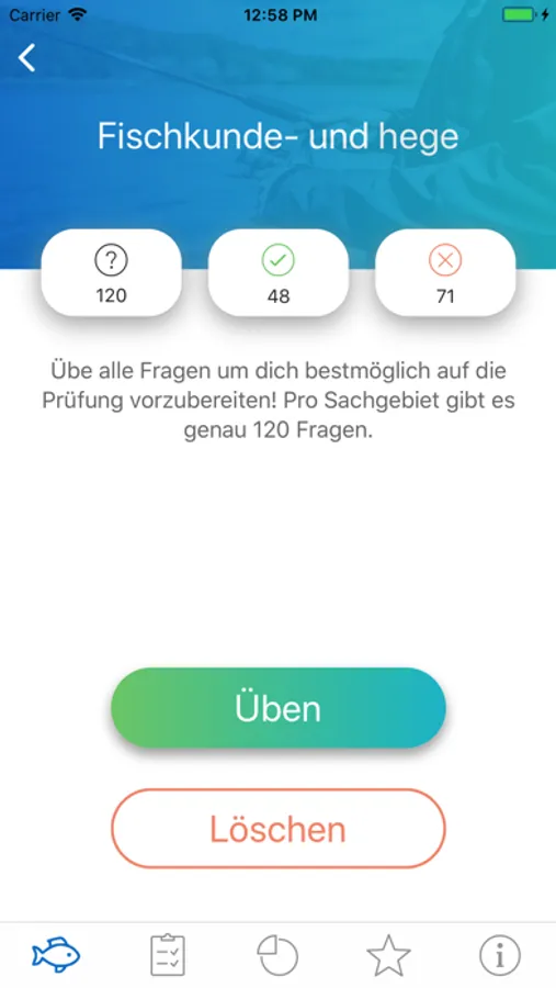 Die App unterstützt beim Lernen für die theoretische Fischereiprüfung durch: