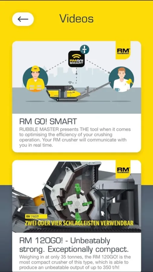 In addition, the app provides direct access to latest videos as well as to all RM product brochures available. Feel free to subscribe for our regular RM newsletter or contact us via app.