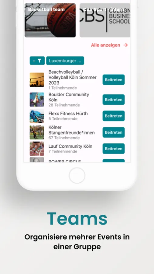 For sports clubs and privately organized sport groups: Create a team and manage all events within your club. Discuss general topics regarding your team via the chat function. You are a trainer/coach? Present your club with all its events to the SportJoe community and win new members.