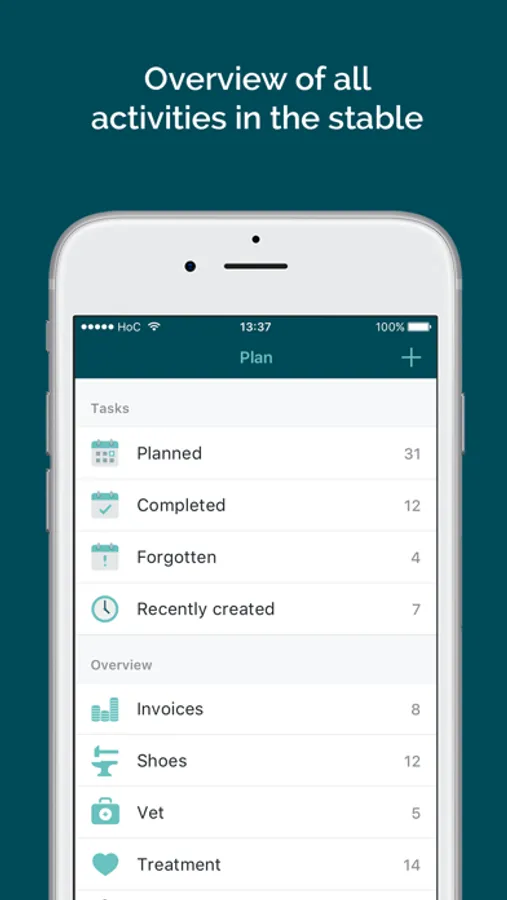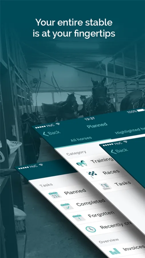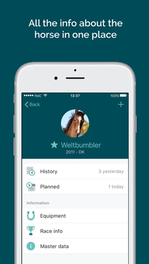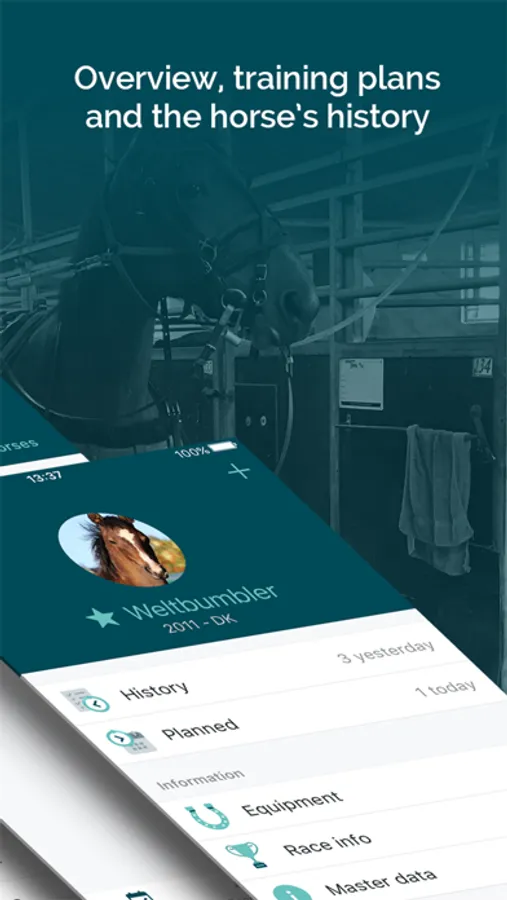 • Each horse has a profile where you can plan and track anything you need; training, nutrition, exercise, treatments and even details like the pulse and temperature of your horse.
