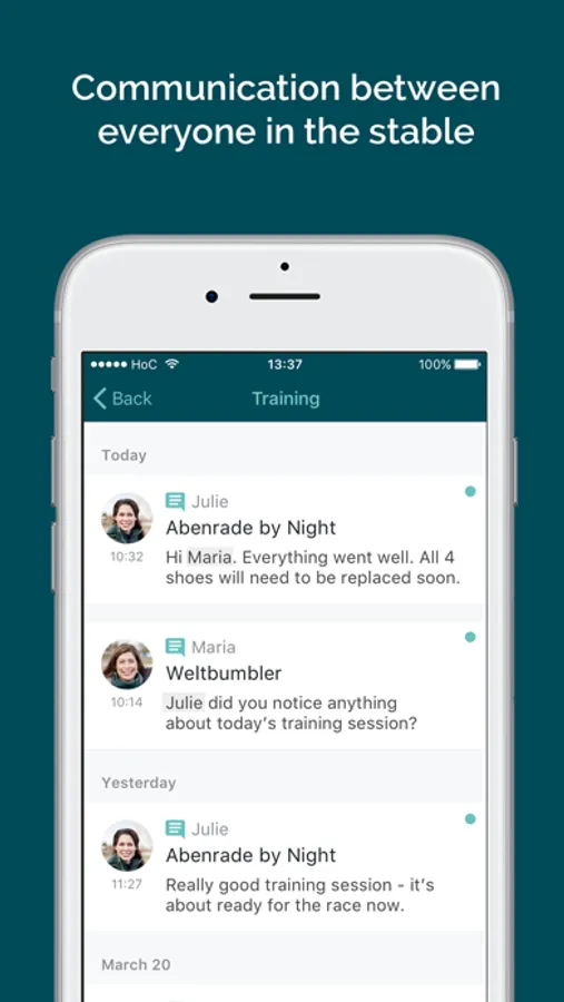 • Mosson Stable reduces the risks of misunderstanding in the stable. No more messaging over different platforms. Mosson Stable helps create a united team in the stable where everyone stays updated.