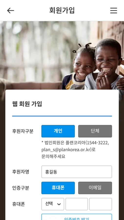 또한, 후원자 정보 및 결제방법을 변경하거나 자원봉사를 희망하는 경우에도 앱에서 신청하실 수 있습니다.