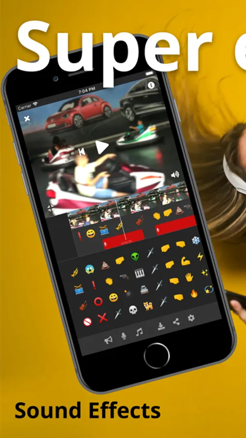 2. While playing the movie, tap the icon at the place you want to add a sound effect.