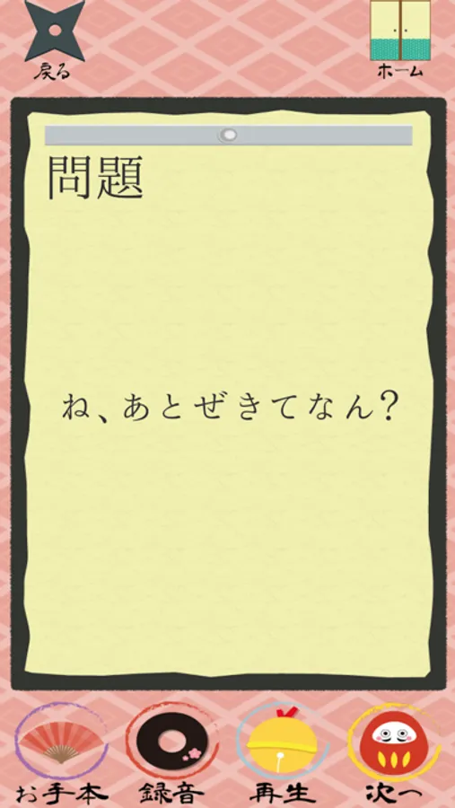 「お手本」を押すと、表示されている文章のお手本の発音が流れます。