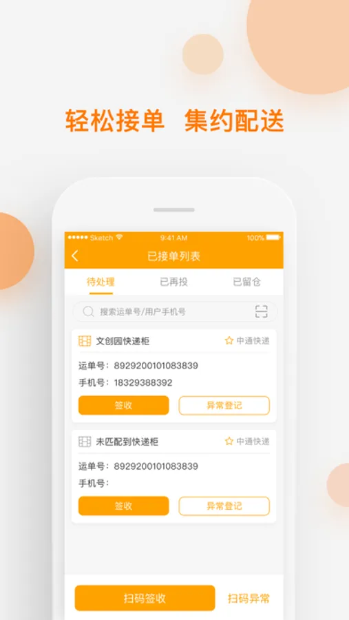*派送操作:包含了派送业务所需要操作的投柜、上架、签收等操作;