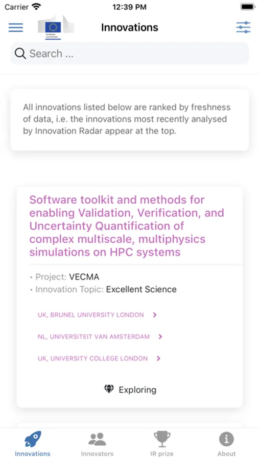 The Innovation Radar is a European Commission initiative to identify high potential innovations and innovators in EU-funded research and innovation framework programmes.