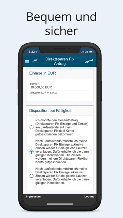 • Ohne Umwege zur gewünschten Aktion: Anlage von Termingeldern jederzeit und überall