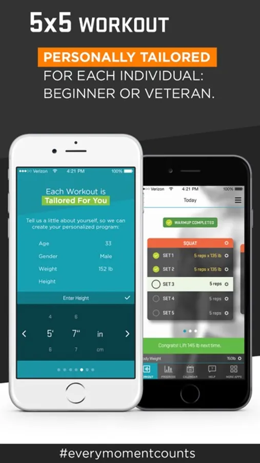 ◉ Both 3x5 and 5x5 workout programs