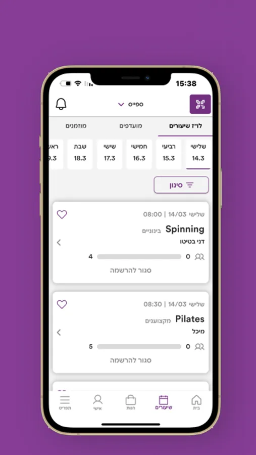 כל מה שצריך לרישום מראש לשעורי סטודיו, ספינינג, פילאטיס, מחול ועוד.