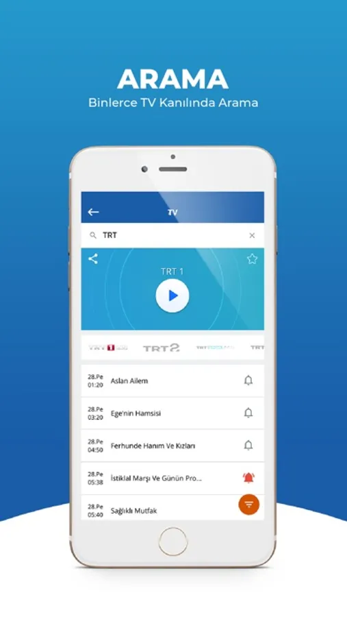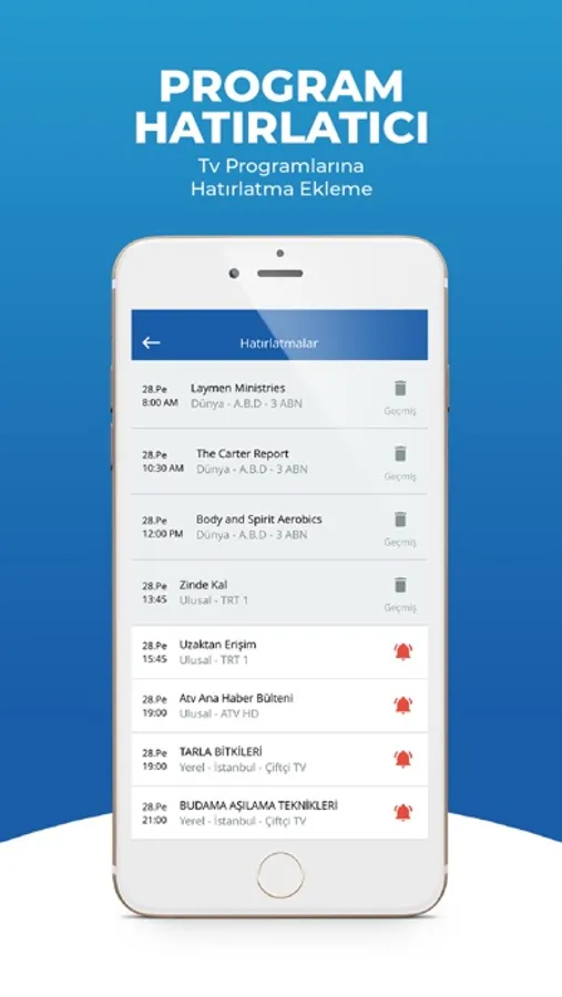 Televizyon kanallarının sağladığı yayın akışlarını uygulamamızdan takip edip, hatırlatıcıya ekleyebilirsiniz.