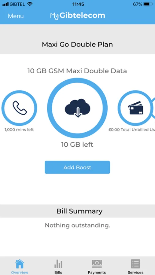 My Gibtelecom is your handy, user friendly app which allows you keep tabs on all services linked to your Gibtelecom account. You may view and pay bills, view historical payment information, check your data, SMS and call minutes usage. Additionally you may add boosts on your mobile plans, as well as add reload top-ups and bundles. Download the My Gibtelecom app and register to use the My Gibtelecom service at https://my.gibtele.com