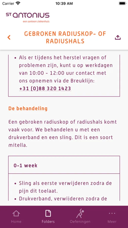 In de app vindt u antwoorden op vragen zoals: Hoe lang duurt mijn herstel? Welke oefeningen kan ik doen om het herstel te bevorderen? Hoe moet ik omgaan met gips? Wat als het gips nat wordt? U vindt foto's en video's met uitleg.